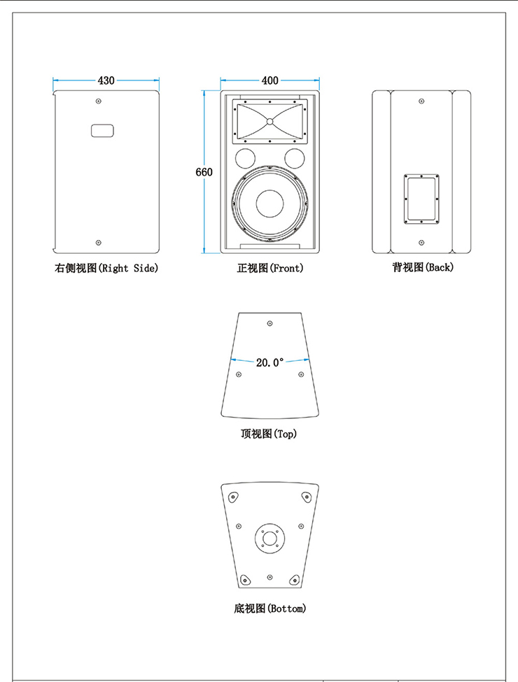 驱 动 器:低音:1 x 12' , 音圈直径 75mm