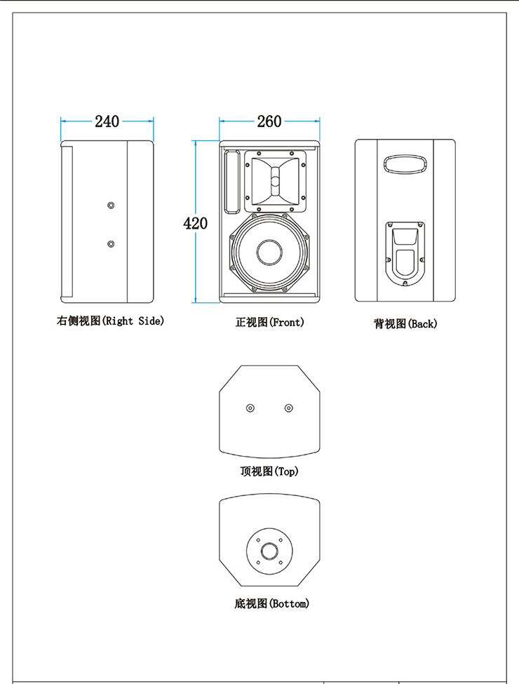 驱 动 器: 低音:8" 单元,2.0" 音圈