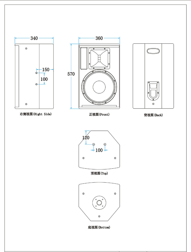 吊 挂 件:音箱顶部,2xM8mm螺孔