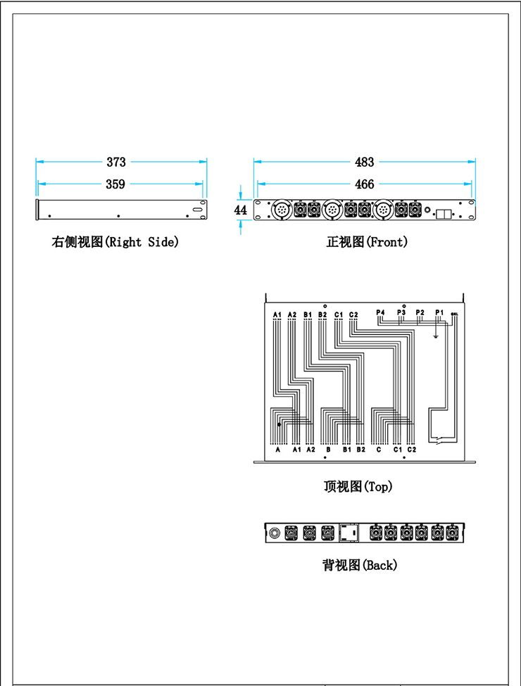◆音频功率输出:(8芯防水插座+4芯Neutrik NL4) x3路